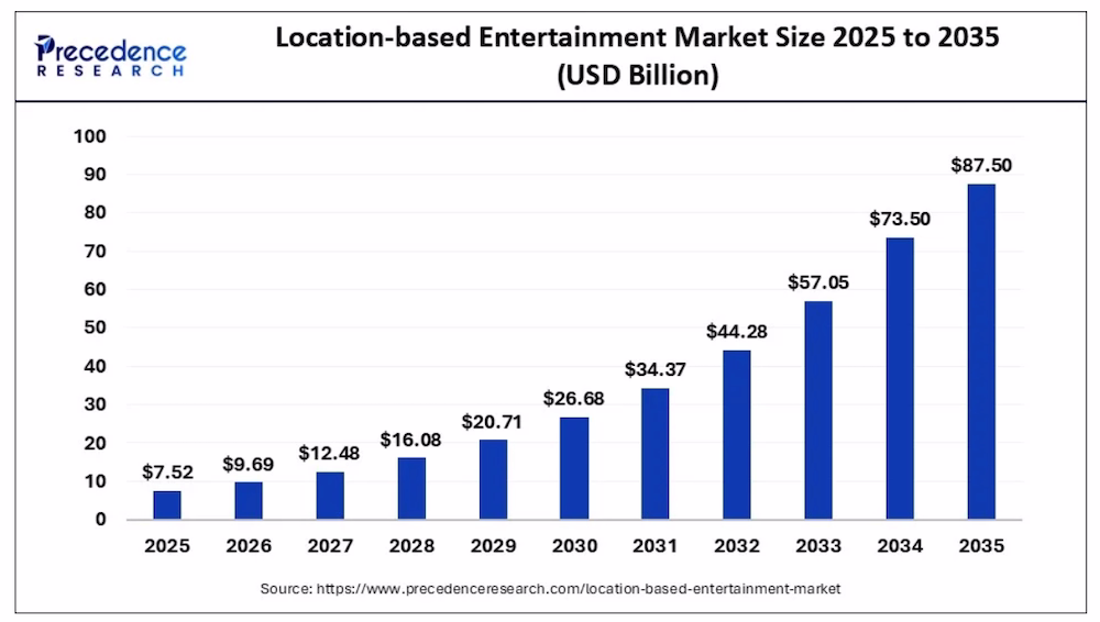 Global location-based entertainment (LBE) is projected to reach USD 73.5 billion by 2035, outpacing many traditional retail categories. The $132 billion experiential retail market is projected to more than quadruple by 2035 as brands and landlords invest in immersive experiences, which are a primary driver of that growth as consumers seek experiences they cannot get at home.
